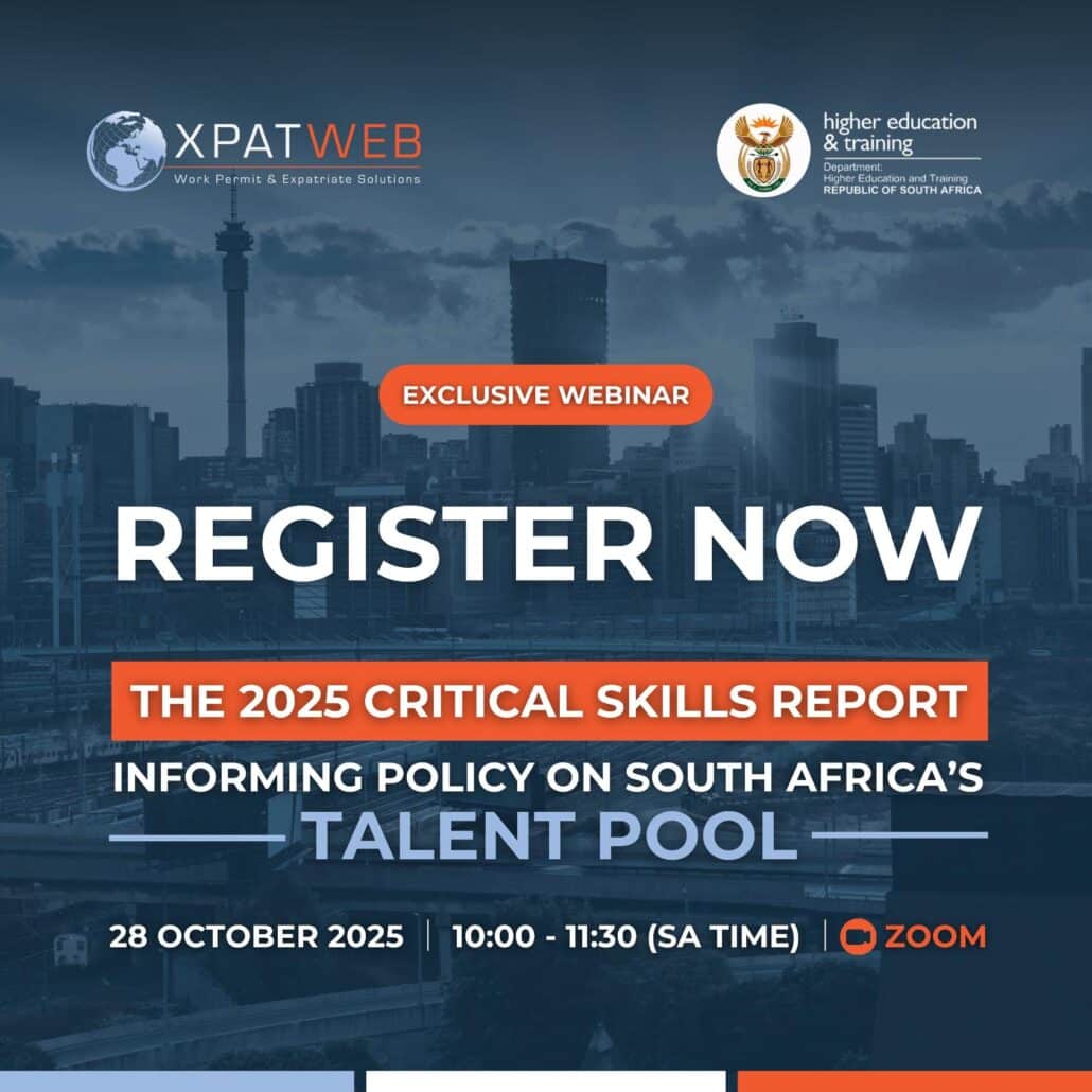 Join Marisa Jacobs, Managing Director at Xpatweb for the official results release of the 2025 Critical Skills Survey, recognised by the Department of Higher Education and Training (DHET) and aligned with the Department of Home Affairs (DHA) in shaping the nation’s Critical Skills List.