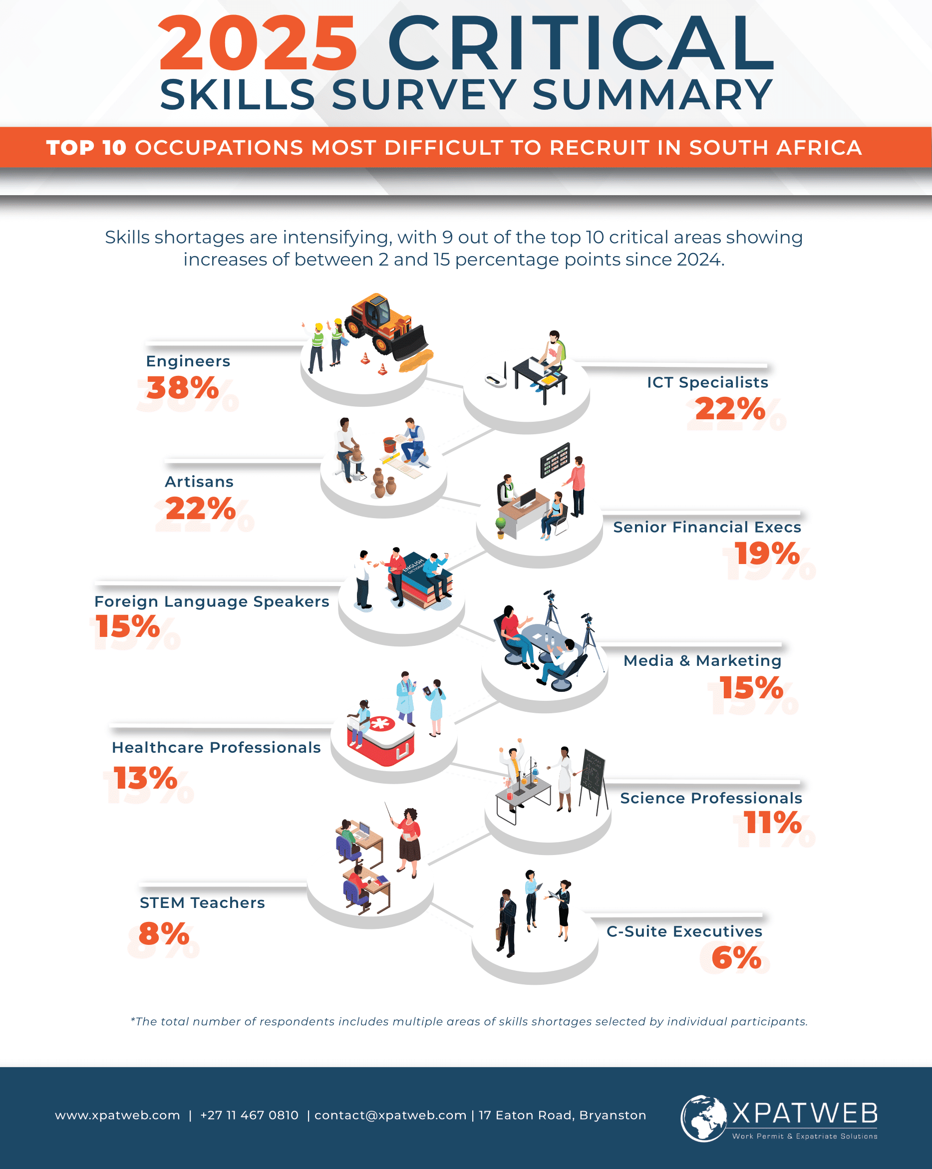 The findings are based on responses from 381 employers, including JSE-listed companies and international groups operating in South Africa. The survey is recognised as the most comprehensive of its kind among verified employers and is Xpatweb’s biggest survey to date.